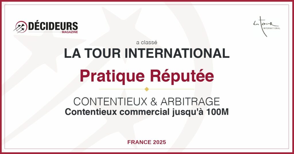 We are proud to announce that our partner Jefferson Larue, from the Litigation Department, has been included in the 2025 rankings of Décideurs Juridiques magazine in the “Litigation & Arbitration – Commercial Litigation up to €100M” category, with a “Reputable Practice” ranking.